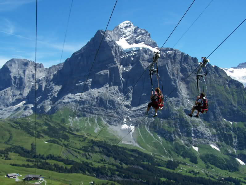 Grindelwald is located 2 hours from the city of Zurich, and 30 minutes up the mountain from the infamous town of Interlaken. Millions visit the area each year to experience the “Jungfraujoch- Top of Europe”, a modern cogwheel railway that takes visitors through a tunnel in the Eiger Mountain to the Jungfraujoch and Sphinx Observation hall. Now visitors to the area can add a little adrenaline to their visit by riding the Grindelwald ZipRider®!