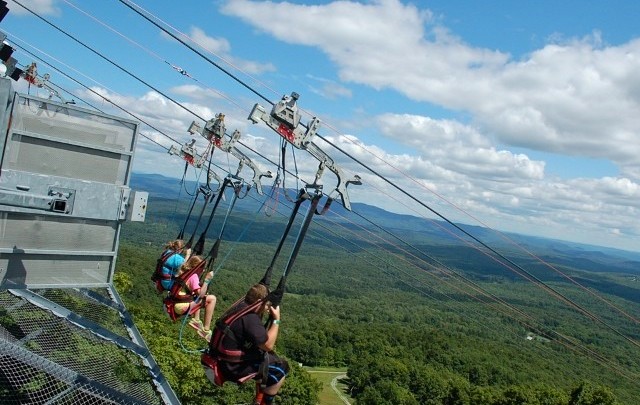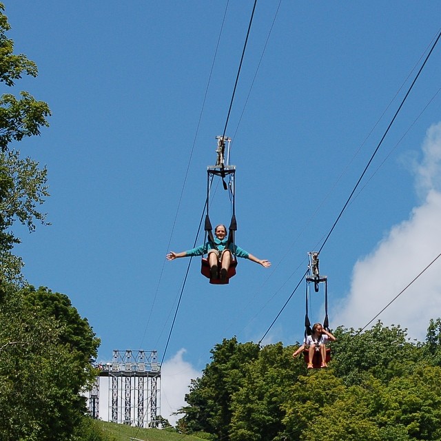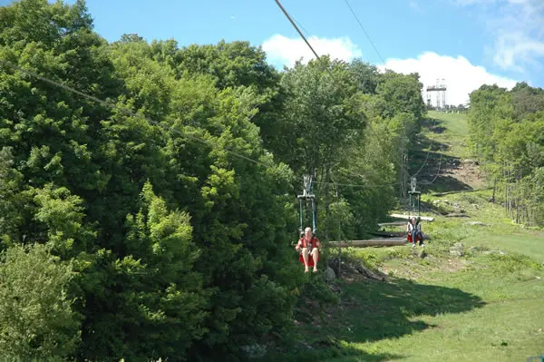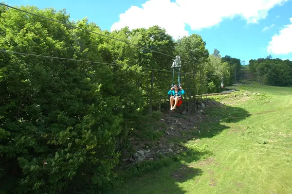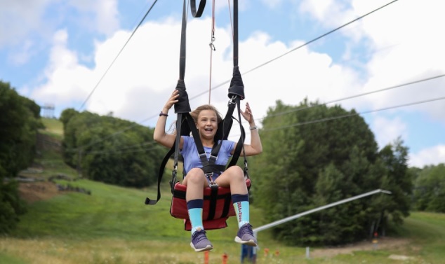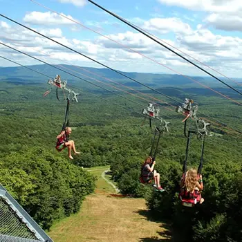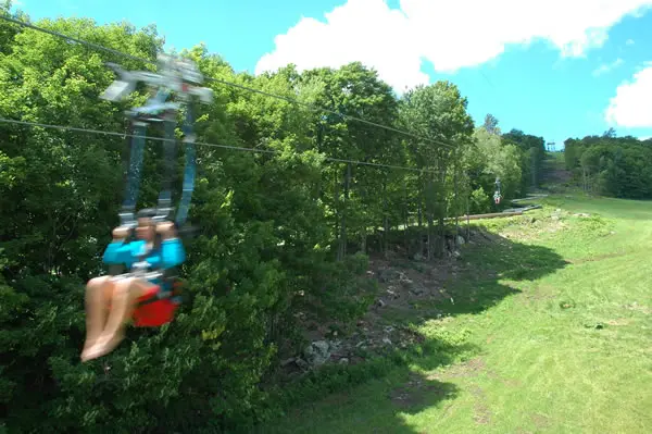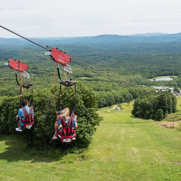 The Bromley ZipRider is the new showcase of the mountain. After a scenic ride up the Alpine Chair Lift, guests begin their ZipRider experience atop the 50-foot-tall upper towers. This is a unique ride as the cable profile is quite low to the ground, giving riders an exhilarating sense of speed as they fly through the tight corridor of trees down the mountain at speeds up to 50 mph. Wave to your friends as you fly over the Alpine Slide multiple times during the summer, and over the ski runs below in the winter. With the landing area perched just above the Sun Mountain Adventure Park, riders are back to the center of activity where more fun awaits.