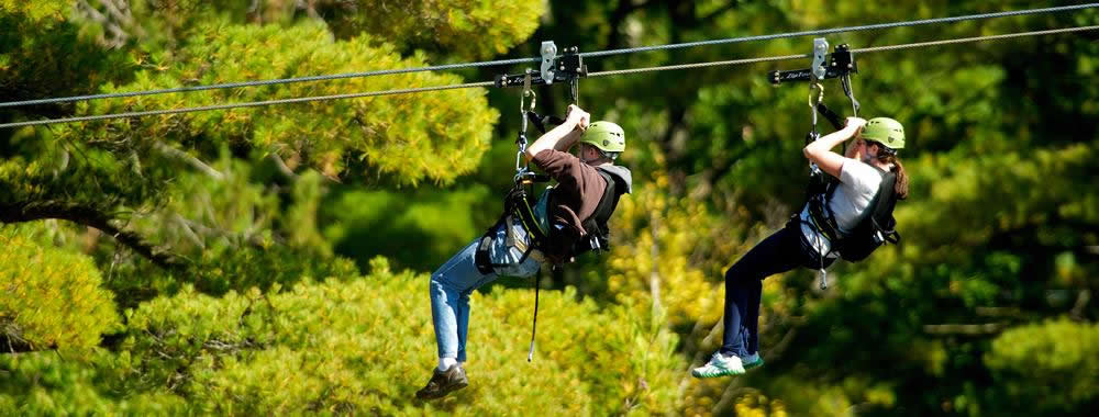 Guests begin their adventure with a brief orientation and a practice run on the Demo Zip, getting comfortable with the ZipTour® trolley and rider‑controlled braking system. From there, a short walk leads to the Wonder Zip—a 451‑foot warm‑up span that builds confidence and sets the stage for what’s ahead.