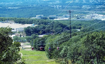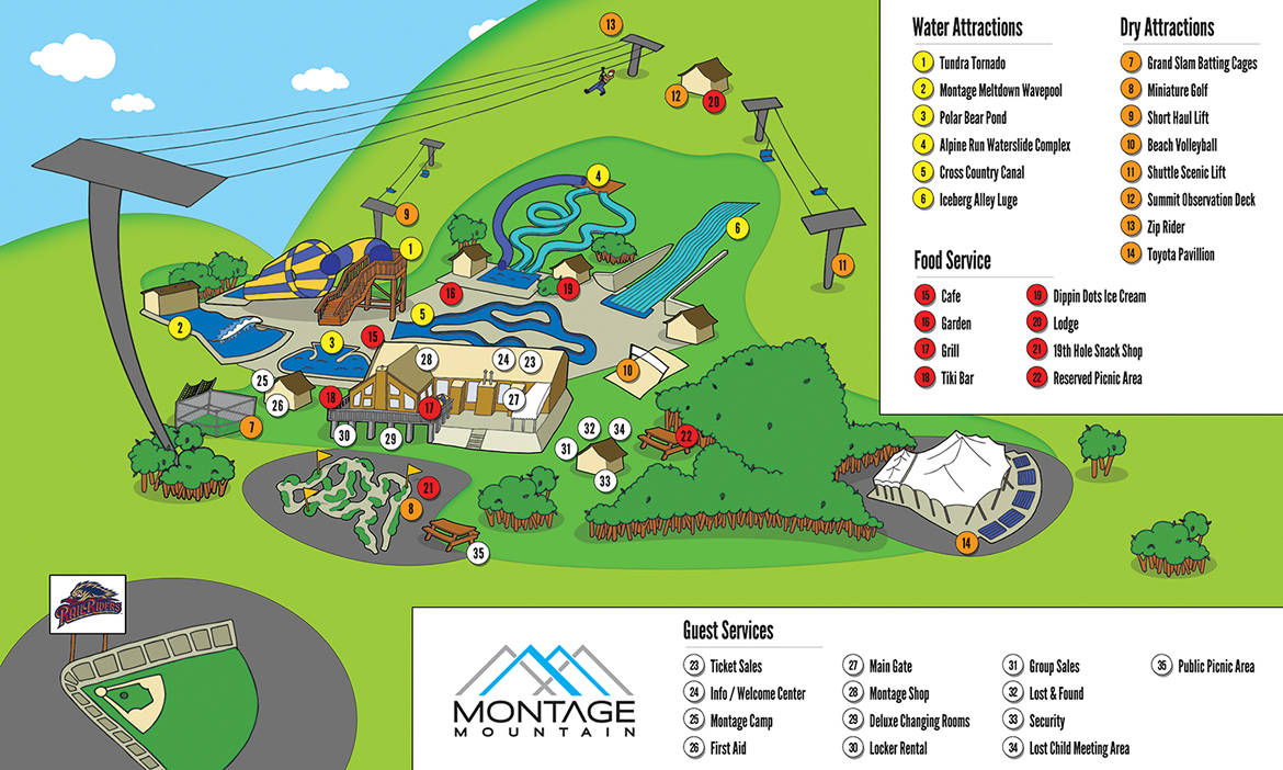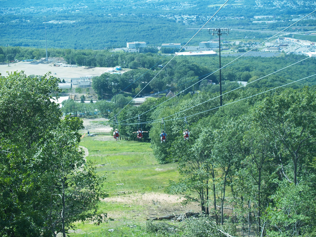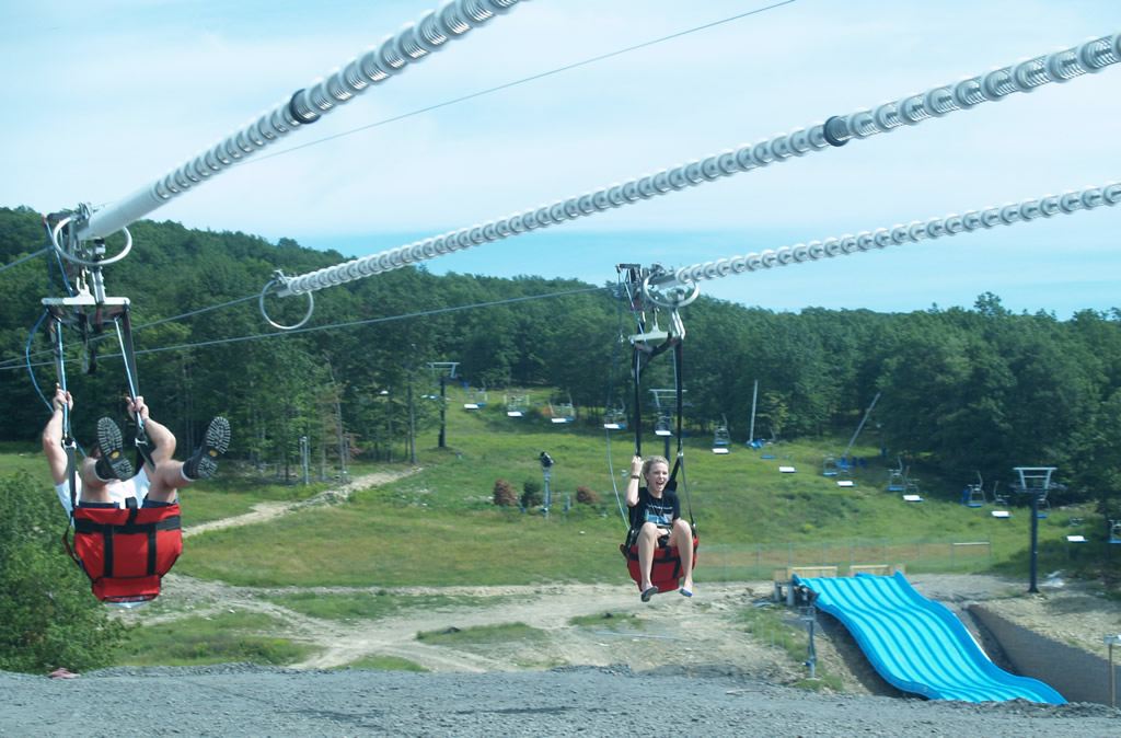 ZipRider® customers first ride up the Shuttle Lift located to the right of Montage Mountain’s Base Lodge. Atop the 50-foot tower, customers have a panoramic view of Scranton/Wilkes Barre and the surrounding wilderness. Our crew often encountered black bears around the top tower while installing the ZipRider®! In the wintertime, customers will ride directly over the Main Line ski run, Loki’s terrain park, and just skier’s left of Montage Mountain’s Superpipe at speeds up to 50 mph! During the summer season, riders will be flying directly above the Sno Cove Water Park near the base area. No matter the season, the ZipRider® is the main attraction in the middle of the action at Montage Mountain.