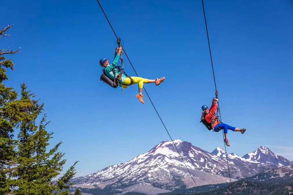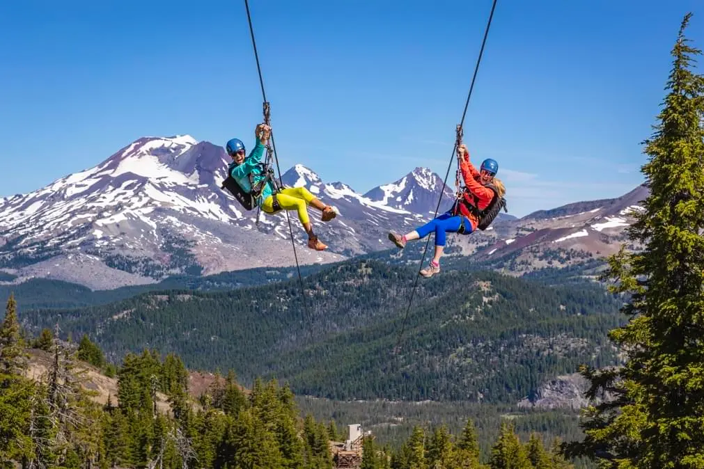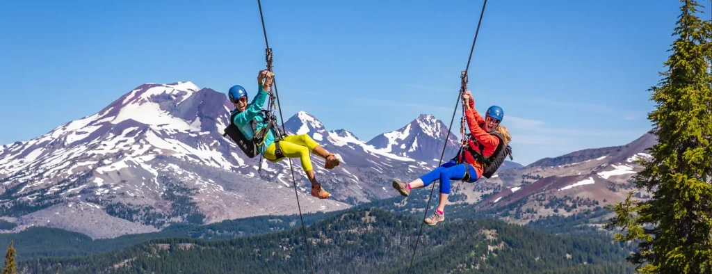 The Mt. Bachelor ZipTour® adds a true high-alpine flight to one of the Northwest’s premier mountain destinations. This dual-line, three-span tour drops nearly 1,400 vertical feet along the slopes of an extinct volcano, making it one of the region’s steepest, fastest, and highest-elevation zip adventures. Riders fly over open bowls, off-piste ski terrain, and Central Oregon’s unique volcanic landscape with sweeping views of the Three Sisters, Broken Top, and neighboring Cascade peaks.