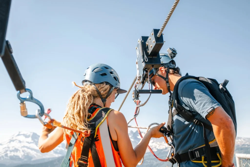 After completing ZipTour® orientation and a practice ride on the Demo Zip, guests board the Pine Marten chairlift for a scenic ride up the mountain. From there, the three-stage descent begins.