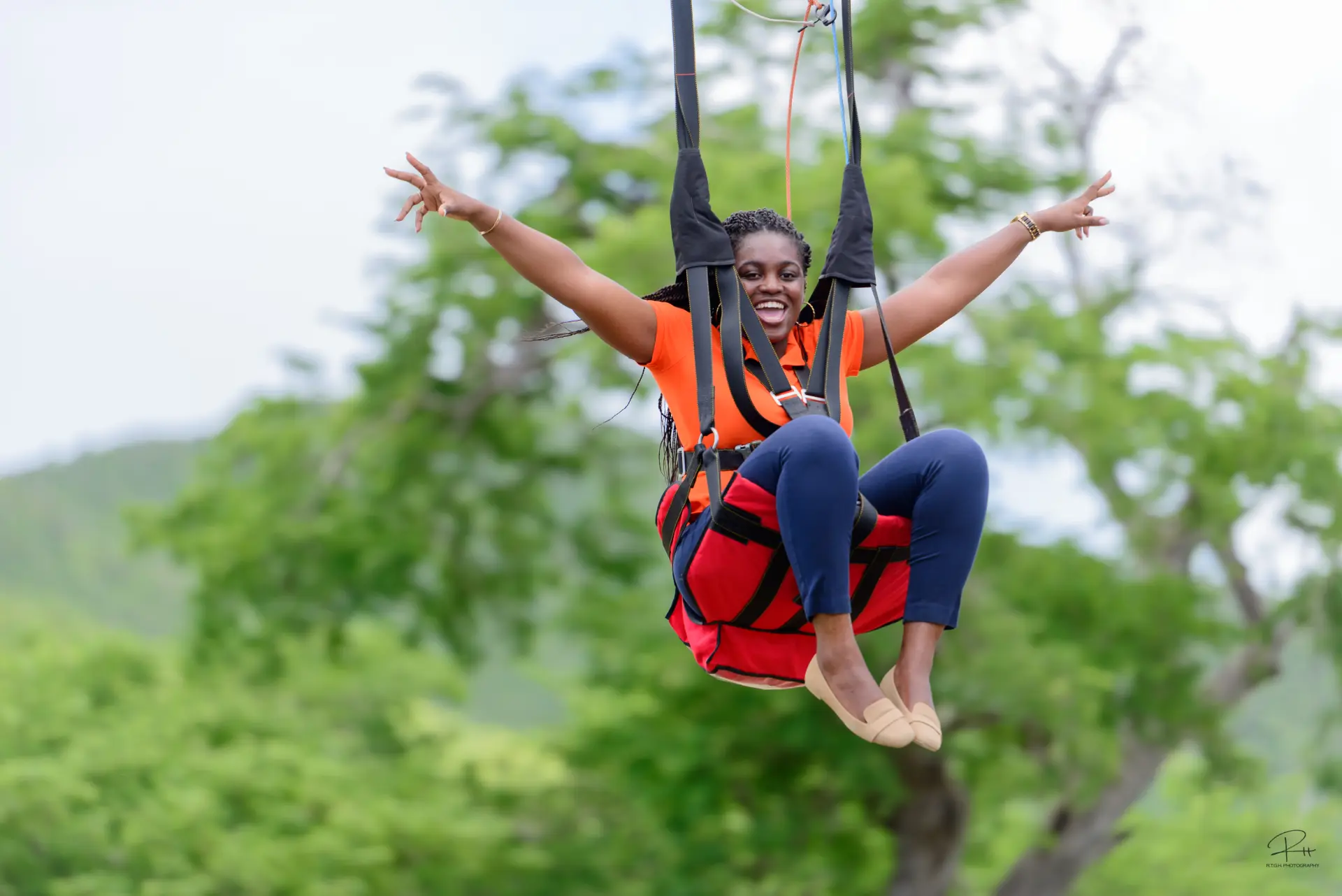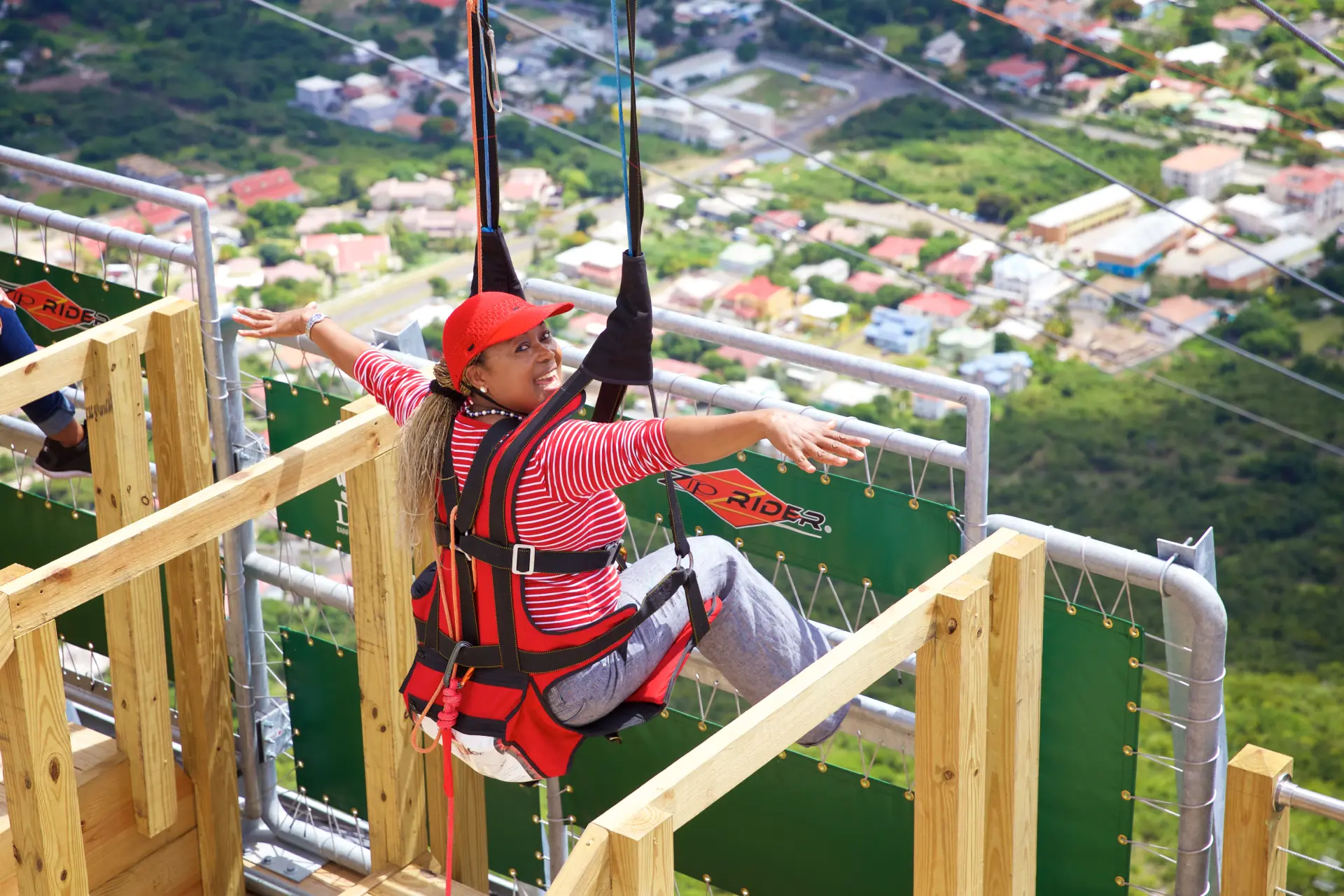 The Flying Dutchman at Rainforest Adventures St. Maarten is the steepest zip line in the world, sending riders on a breathtaking plunge from the summit of Sentry Hill toward the Caribbean Sea. Dropping 1,066 vertical feet over a 2,600‑foot flight path at an average 42% grade, this ZipRider® delivers a cliff‑to‑coast descent unlike anything else on Earth. As you accelerate over the lush rainforest canopy, panoramic views unfold in every direction—turquoise water, the rugged coastline of St. Maarten, and neighboring islands including Saba, St. Eustatius, and St. Barts.