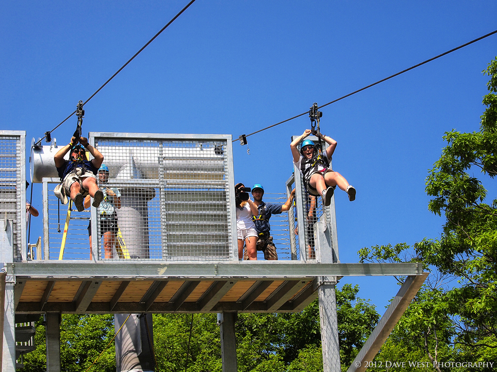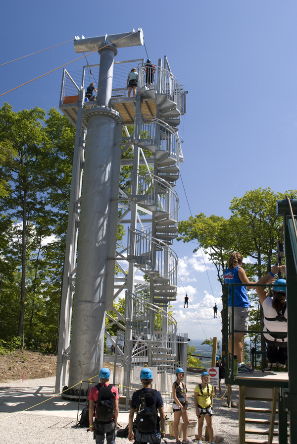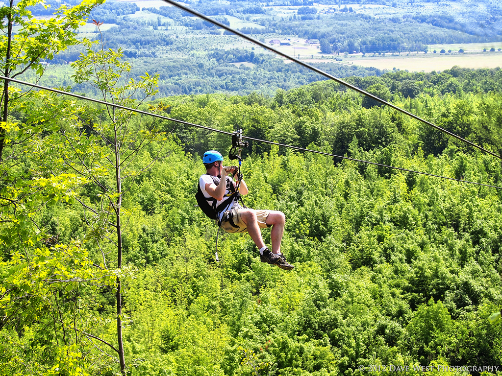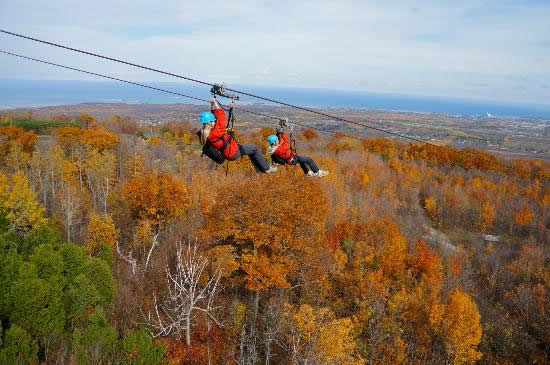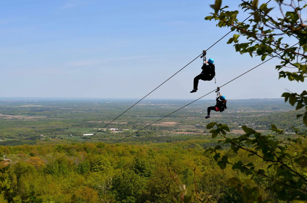 With the introduction of the ZipTour® Thunderbird Twin Zip, you can take your visit to Scenic Caves to new heights…literally! Once you’ve been outfitted with a harness and trolley, a short training session teaches you how to operate your custom ZipTour® trolley so you can control your own speed as you fly over the tree tops. Climb to the top of the 50 foot tower and take a moment to enjoy the panoramic view of the surrounding mountains and across the Georgian Bay to Christian Island and beyond.